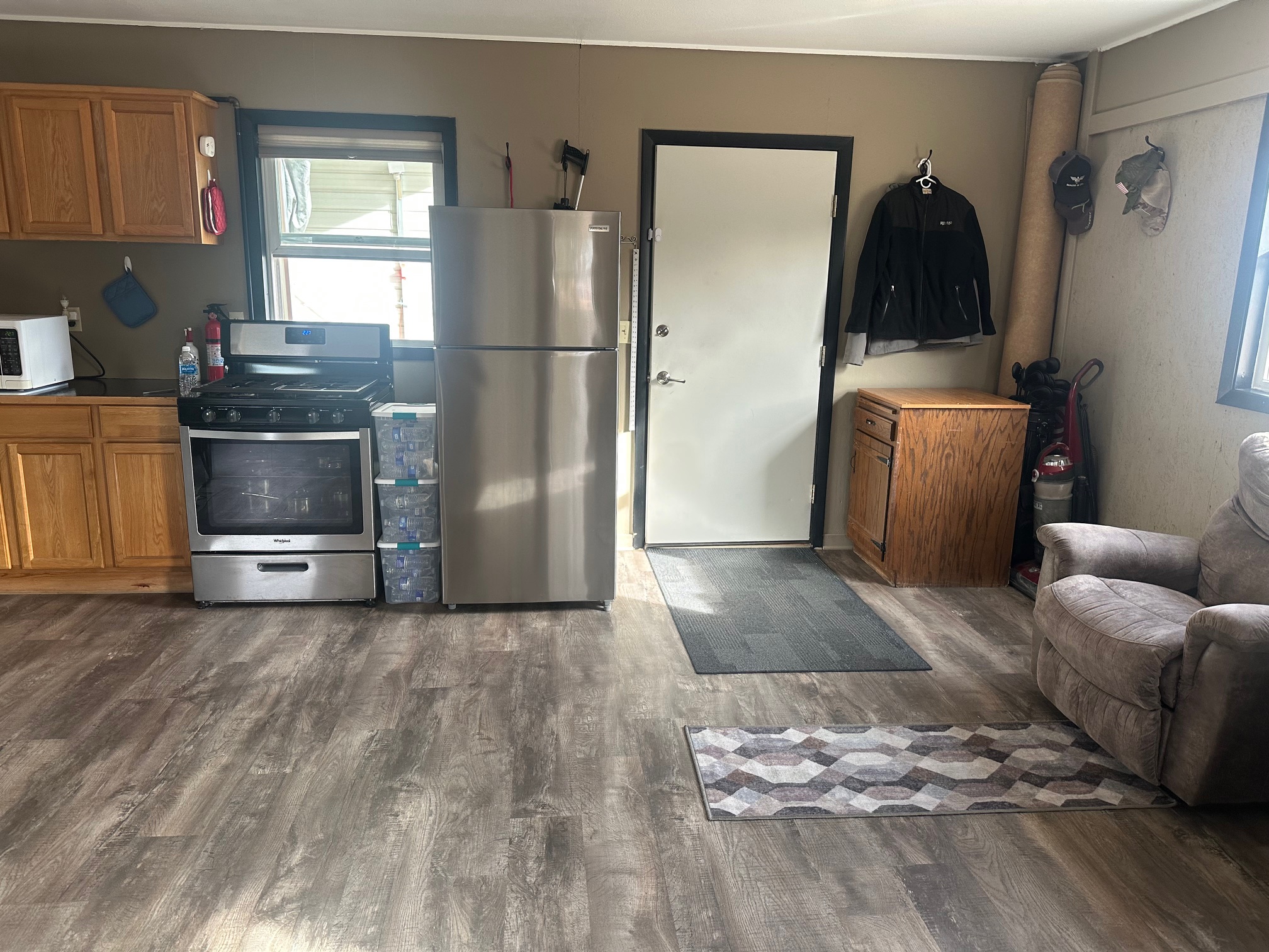 A front-gable Traditional home with 2 beds up, 1 or 2 beds down, 3 baths, appliances, detached and attached garages, spklr sys, cov patio, fenced yard, finished basement, fenced garden, and 10,500 sf lot.