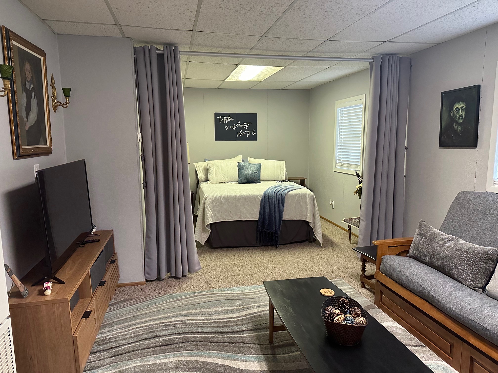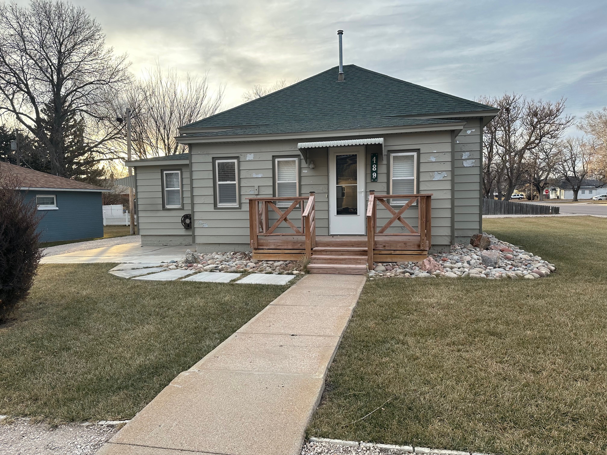 A front-gable Traditional home with 2 beds up, 1 or 2 beds down, 3 baths, appliances, detached and attached garages, spklr sys, cov patio, fenced yard, finished basement, fenced garden, and 10,500 sf lot.